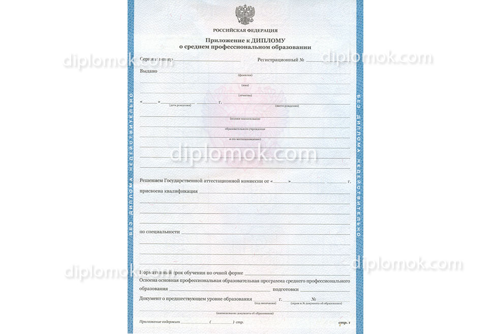 купить приложение к диплому ссуза до 2013 года
